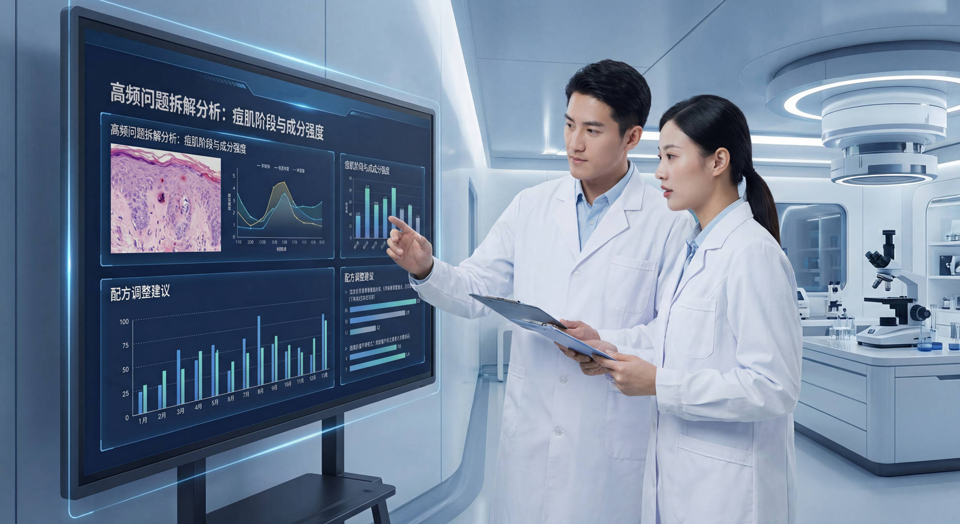 在此基础上,DRDM研发团队会定期对高频问题进行拆解,例如痘肌在不同阶段对成分强度的接受差异、淡印周期中的波动节点等,并将分析结果反馈至实验室,作为配方优化和技术调整的参考方向。这一机制让产品迭代不再依赖单一实验结果,而是建立在大量真实体验之上。